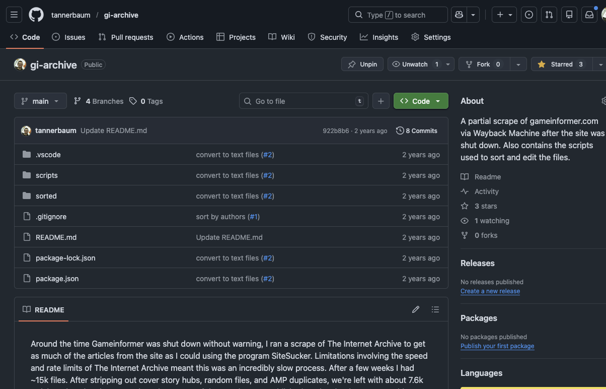 A partial archive of the Game Informer website taken down without warning. Scraped and categorized articles by author via scripts. Thankfully they returned!